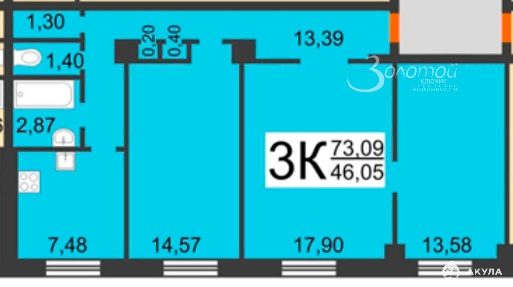 Общая площадь: 73, 2 м
